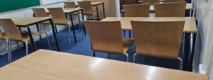 Room 5 is a quiet and comfortable space, perfect for one-to-one meetings, private tuition, or small group discussions. It can accommodate up to six people seated in a circle or around a table, or up to 12 in a theatre-style setup. Its simple, adaptable layout also makes it ideal as a breakout space, or for specialist sessions such as musical coaching in the evenings.