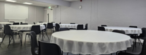 Room 3 is a spacious and versatile venue, accommodating up to 55 guests for meetings, workshops, and training sessions. Its open layout also makes it ideal for larger community events, fitness or wellbeing classes, and social gatherings, offering plenty of room to create the perfect setup for your occasion.