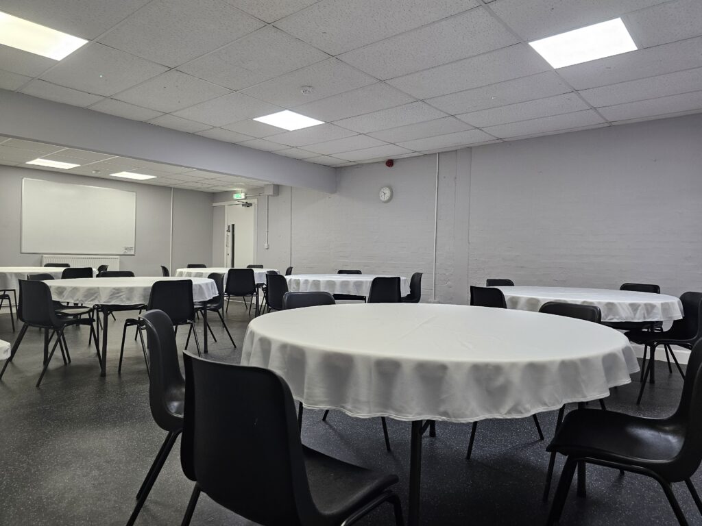 Room 3 is a spacious and versatile venue, accommodating up to 60 guests for meetings, workshops, and training sessions. Its open layout also makes it ideal for larger community events, fitness or wellbeing classes, and social gatherings, offering plenty of room to create the perfect setup for your occasion.