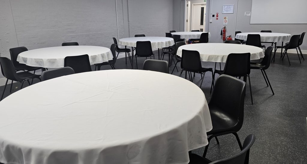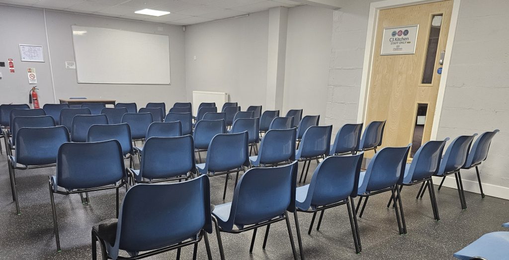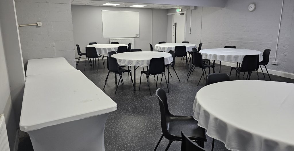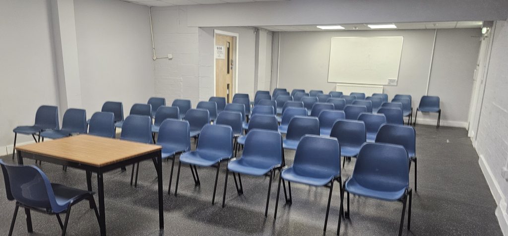 - Amenities: 8 LED 36 Watt Panel Lights – Wi-Fi – Parking – Disabled Access – 2 whiteboards (1.8×1.2m, 2.4×1.2m) – 6 double plug sockets – Hard Floor – Toilets including disabled.
